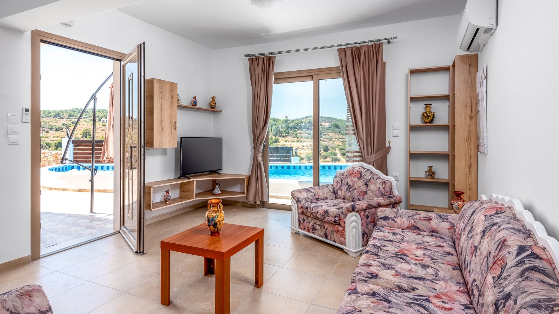Start your day with an iced coffee and a refreshing dip in your private pool, overlooking the endless blue of the Aegean Sea or the surrounding mountains, then sunbathe on your comfortable sun loungers. And complete it, just as idyllic, enjoying the delicious meal you have prepared in your fully equipped kitchen or on your barbecue. Choosing, depending on your mood, to have your dinner served either at your spacious dining room or living room or your outdoor dining area located on your private balcony or terrace for a memorable meal in the starlight.
