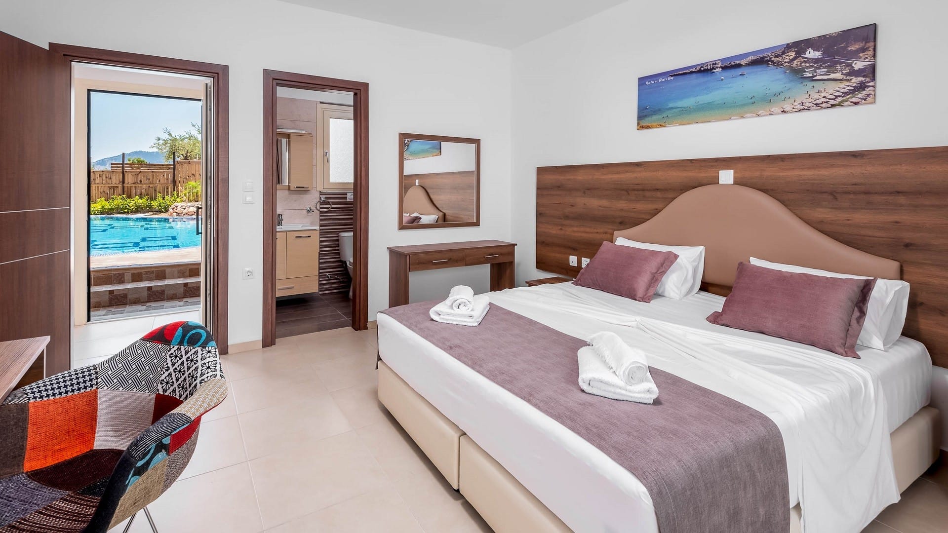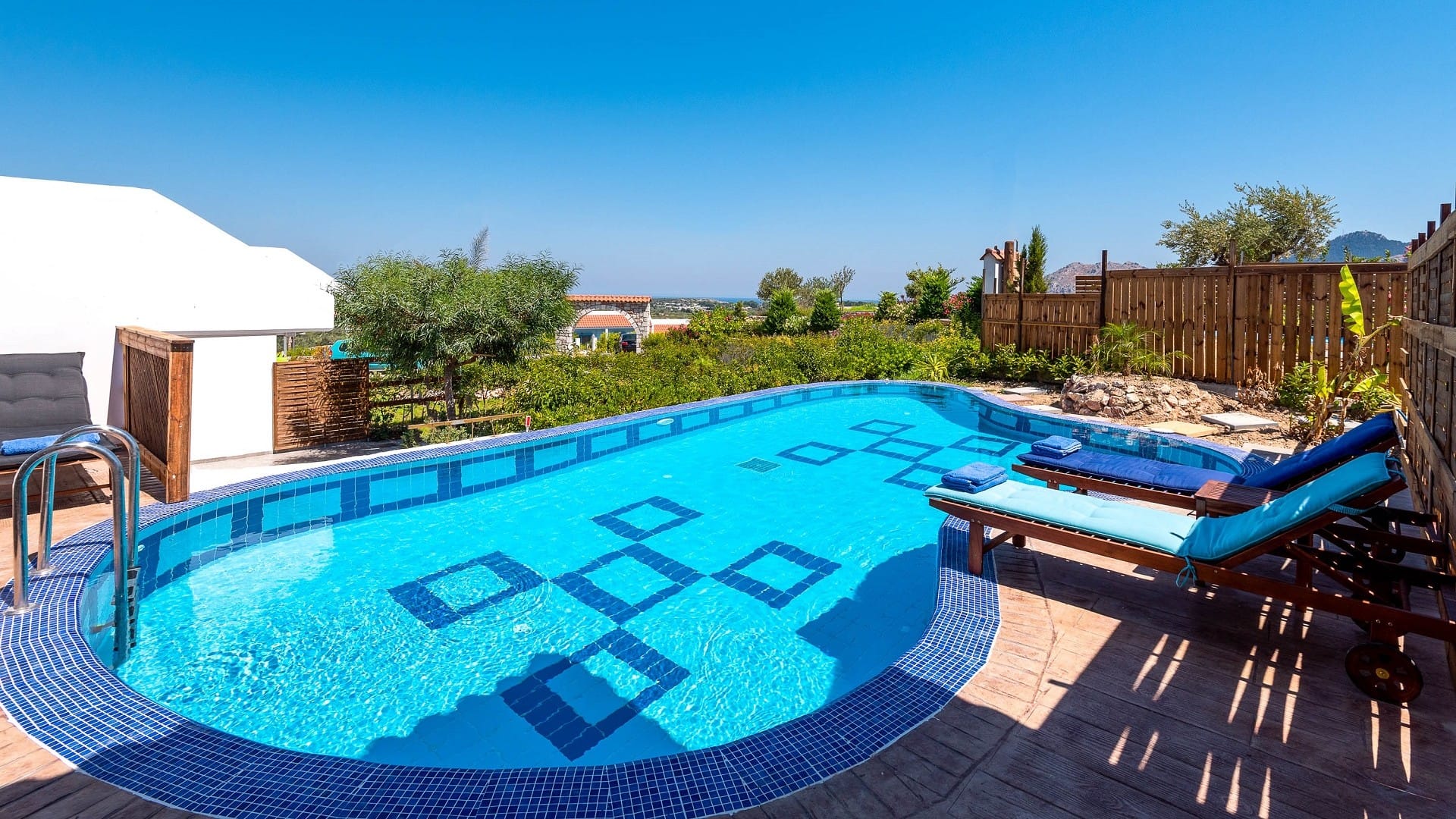 The two-bedroom maisonette with private pool and mountain views of Kolymbia Village is rightly one of the top value for money options in Rhodes for families and groups who seek privacy and affordable luxury.
